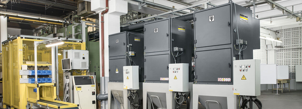 Suspended particles can vary greatly: fine dust, hazardous dust, fine swarf and all kinds of abrasion. In many industries the continuous extraction of process dusts from metals, glass, stone, textile fibres, agricultural products or chemicals directly in the process is essential. Our industrial dedusters reliably capture suspended particles, even in large quantities, in continuous operation 24/7 directly at connected machining centres or filling plants.