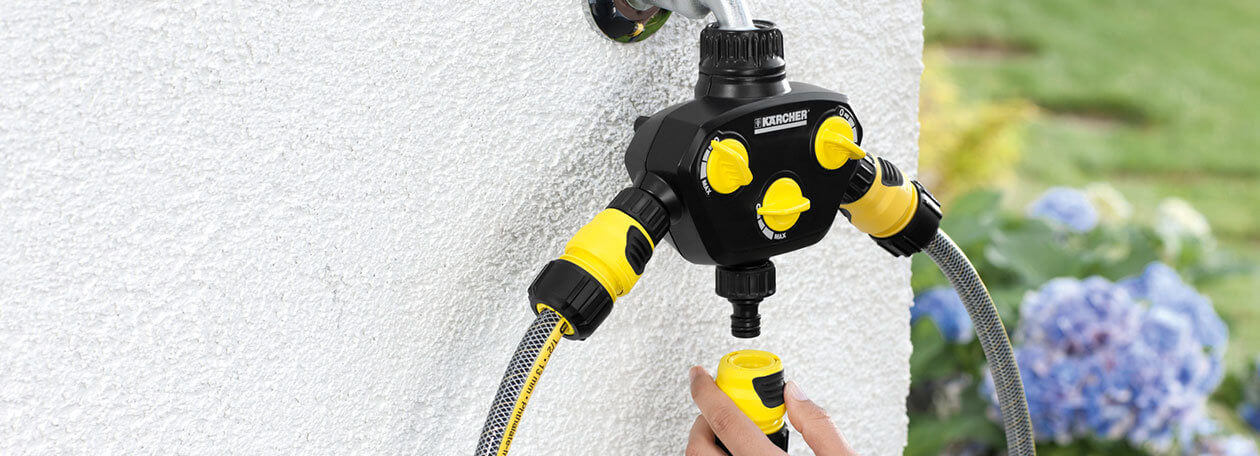 Hose connection systems for flexibility whatever the demand. Connection, coupling, decoupling and repairing: Kärcher offers the right connecting pieces for all available click systems and standard hose diameters. Regardless of the hose diameter – 1/2″, 5/8″ or 3/4″: Kärcher’s ultra-watertight hose connectors are always the perfect fit – guaranteed. The universal hose connectors also boast outstanding resilience and maximum tensile strength. The connectors are available with or without aqua stop. The premium universal hose connector also has an aluminium hose fastening and soft plastic recessed handles for even better handling. All Kärcher plug systems are of course compatible with the standard click systems on the market.