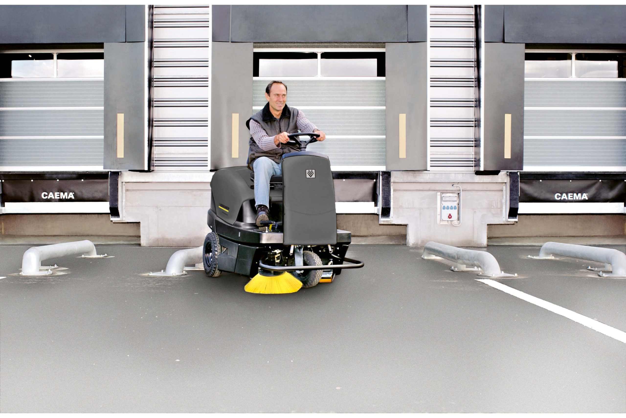 Άνετo, μοντέρνo σάρωθρο επικαθήμενου χειριστή για επαγγελματική χρήση σε εσωτερικούς και εξωτερικούς χώρους για επιφάνειες από 8.000 – 10.400 m²/h.